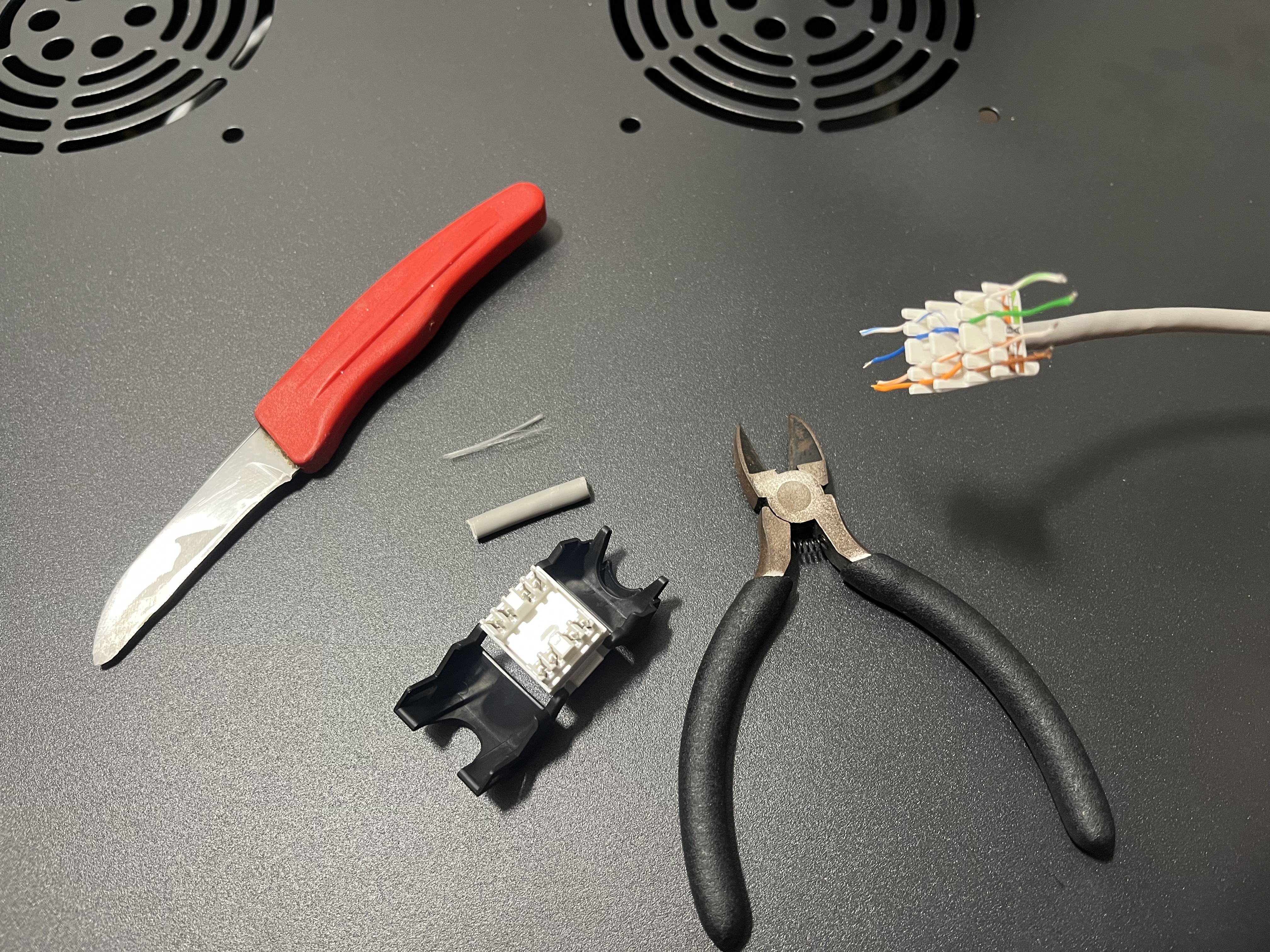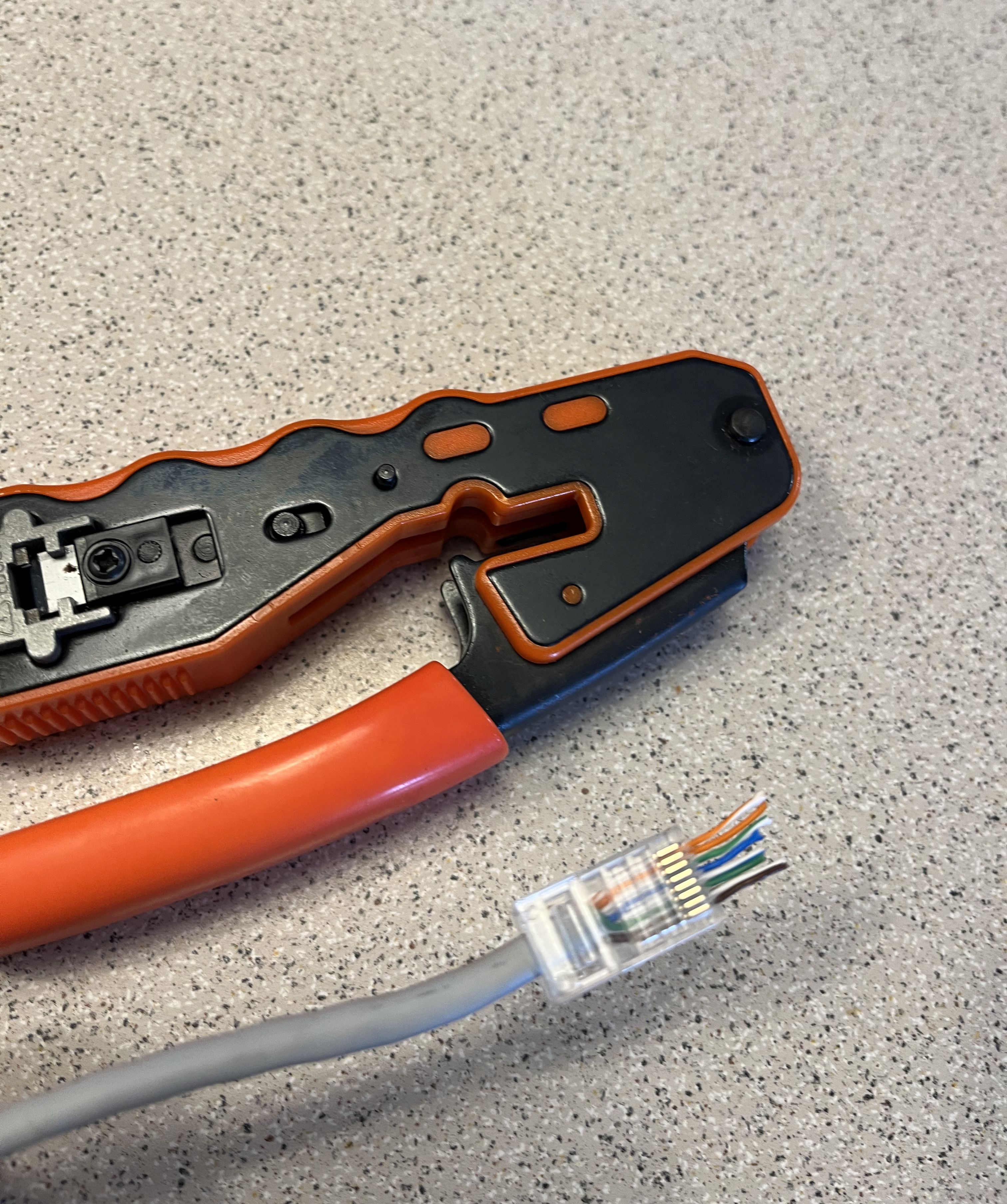 Sok egyéni hosszúságú, normál RJ45 csatlakozóval rendelkező kábelre is szükségem volt a fali csatlakozó és az eszköz között. Bevallom, a hagyományos szerelési móddal nekem sok problémám volt, azonban felfedeztem a pass-through (azaz átmenő) csatlakozót. Ehhez egy speciális szerszám is kell, mely el is vágja a kilógó kábelvégeket, és rá is szorítja. Ezzel már gyerekjáték. Persze egy kábeltesztelő is jól jön.