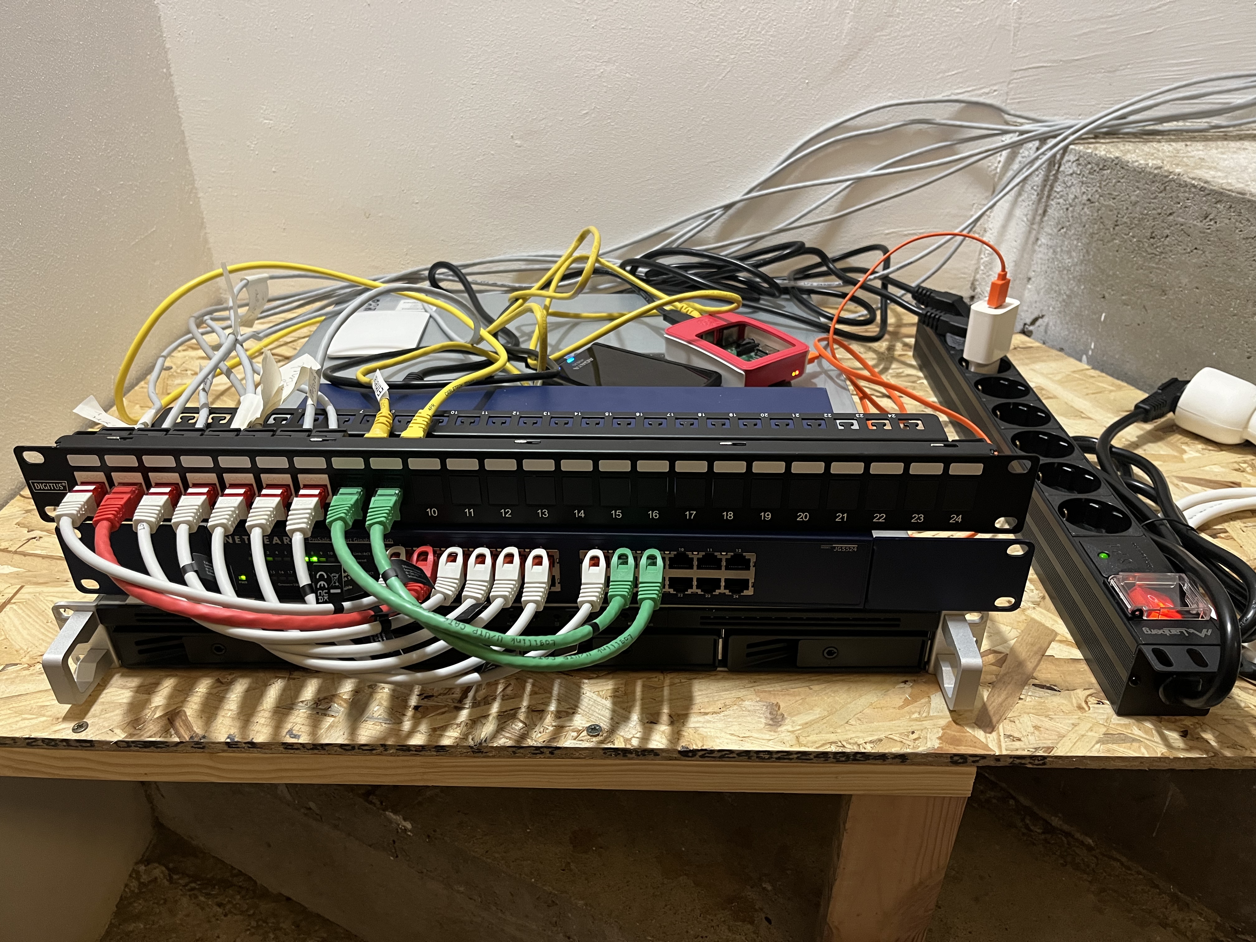 Ha viszont mindenhol lesz vezetékes hálózat, a lakásban szerteszét lévő eszközeimet eldughatom egy közös helyre, nem foglalnak a lakótérből, nem fűtenek, és nem lesznek hangosak, és egy helyen tudom ezeket kezelni. és akkor mehetnek egy szekrénybe. Egy rack szekrénybe! Ilyen pl. az ISP router, a NAS és egy Raspberry Pi.
